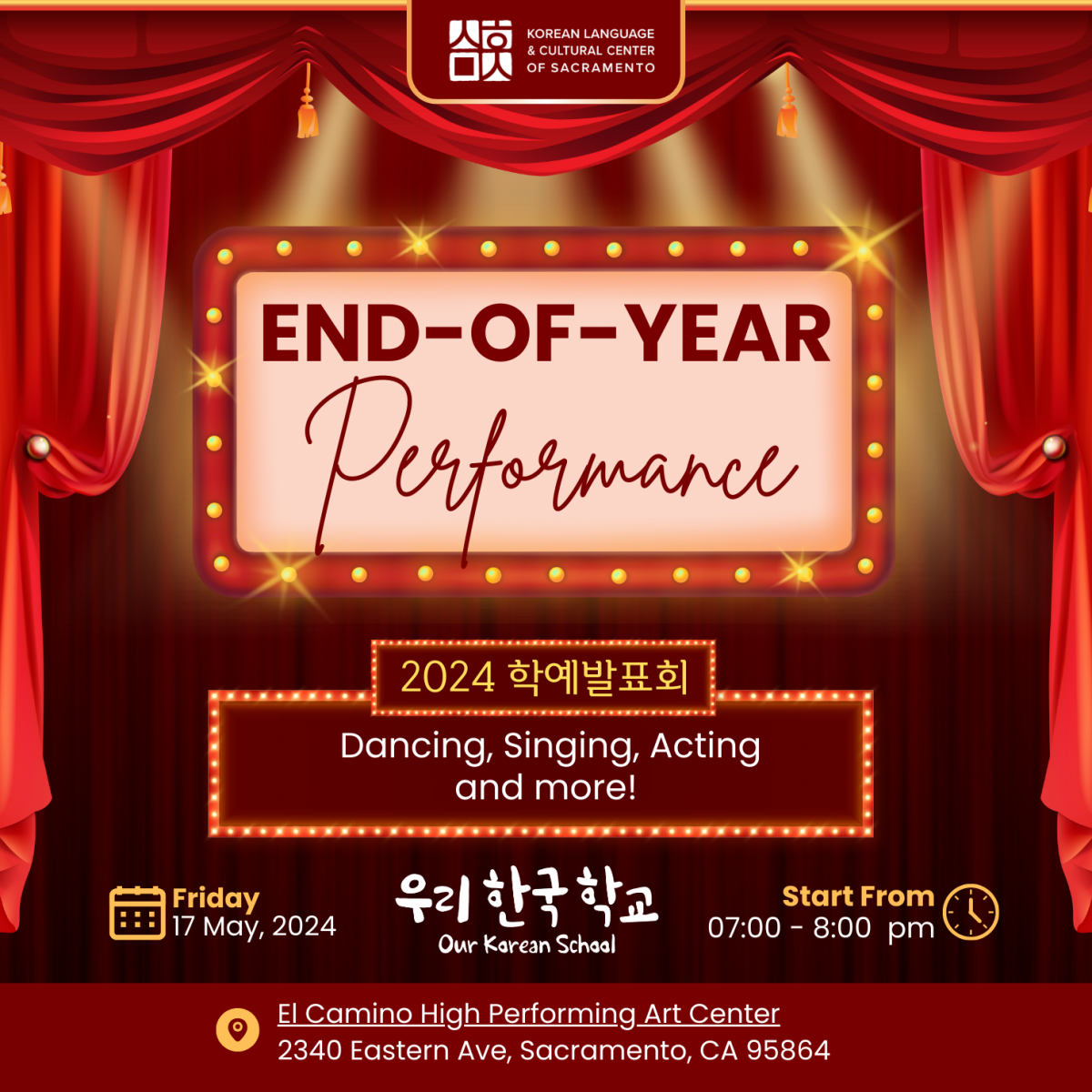 Welcome to the Korean Language and Cultural Center of Sacramento (KLCCSac). We are a passionate group of parents and teachers from our local community who share a common goal – to create an inclusive and vibrant space where everyone, regardless of their background, feels embraced and excited to explore and celebrate the richness of Korean language and culture.